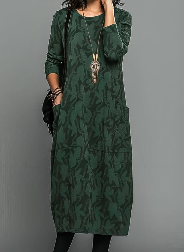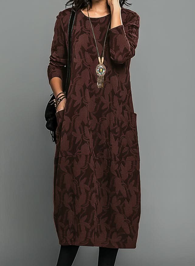 Omfavn den ubesværede stil med Cassie™ Casual Kjole med Rund Uddybning. Designet til komfort og varme, er denne kjole den perfekte følgesvend til kolde dage, der tilbyder en flatterende pasform og hyggelig dækning.