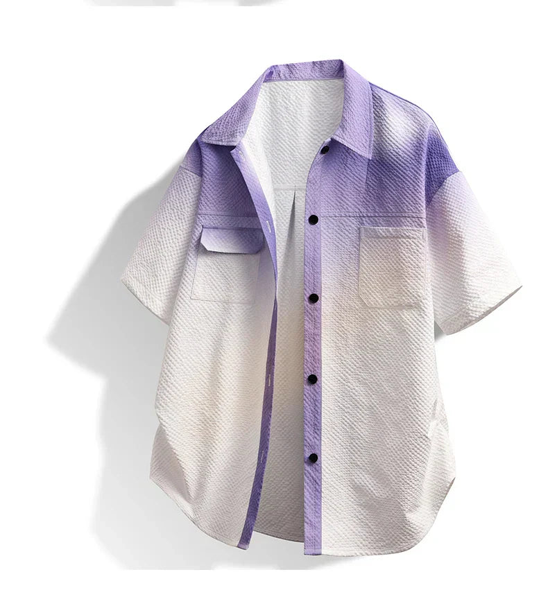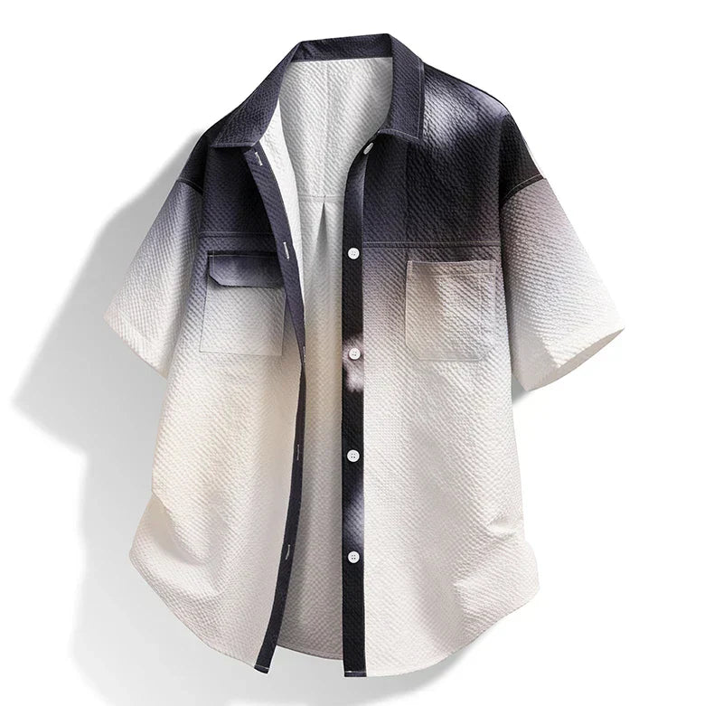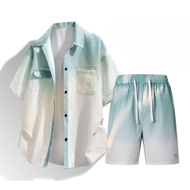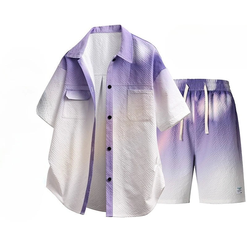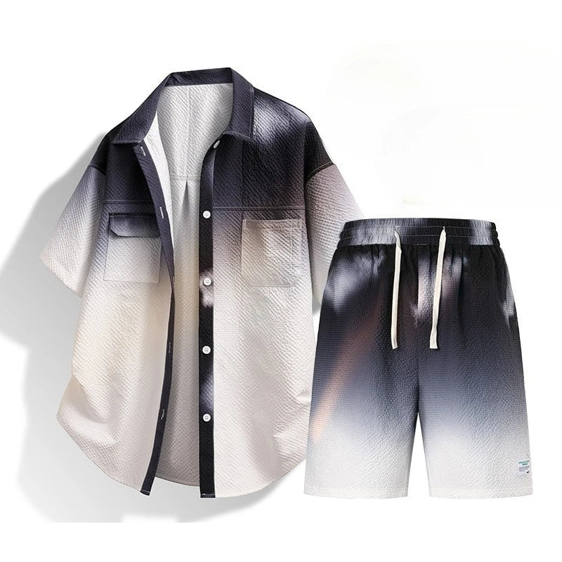 ADRIAN™ Fade Sæt forener bløde farveovergange med stilren sommerkomfort. Det todelte sæt består af en skjorte og shorts med en glidende farvefading og elegant struktur – ideelt til sommerens rolige dage og festlige aftener.