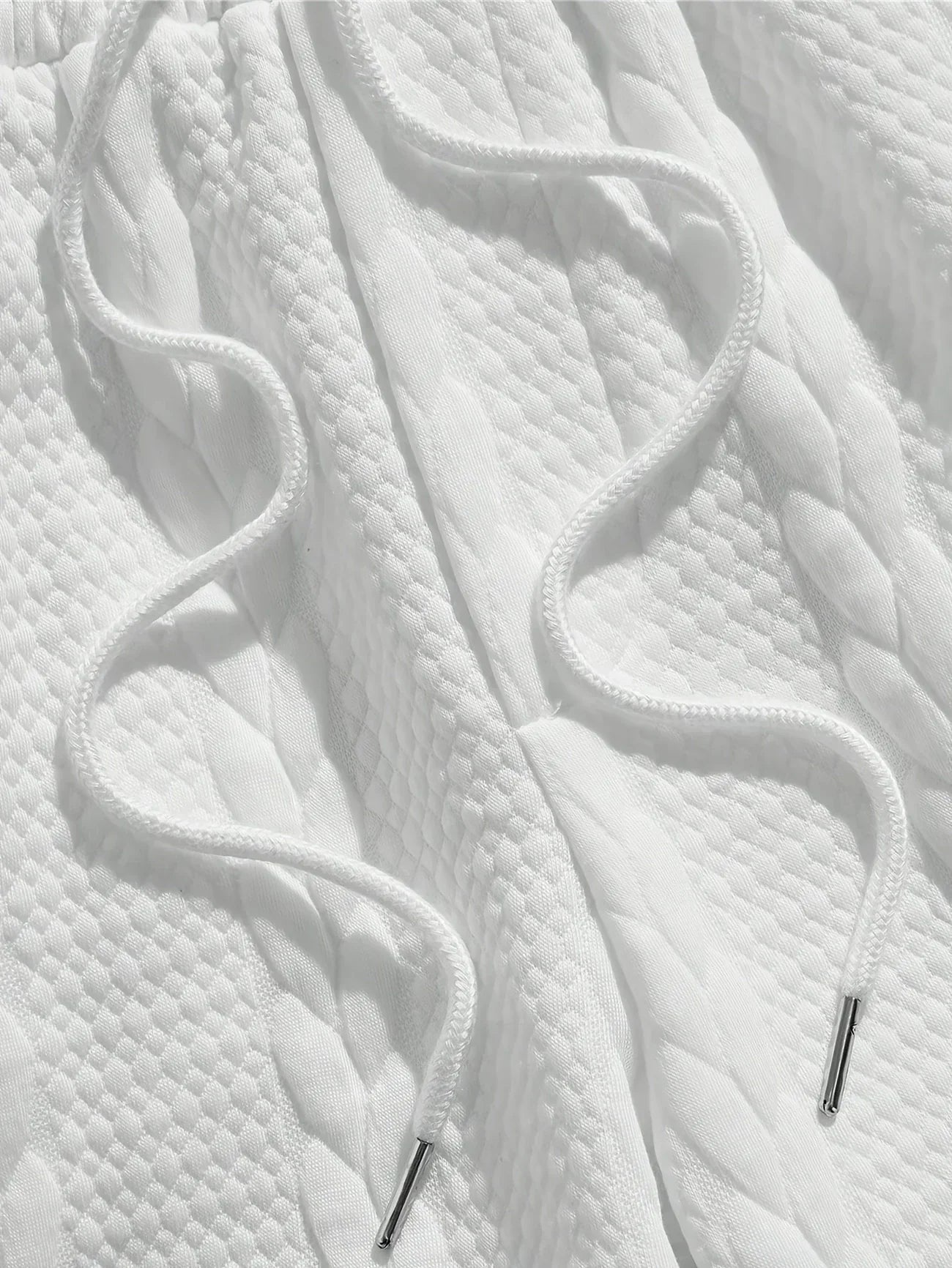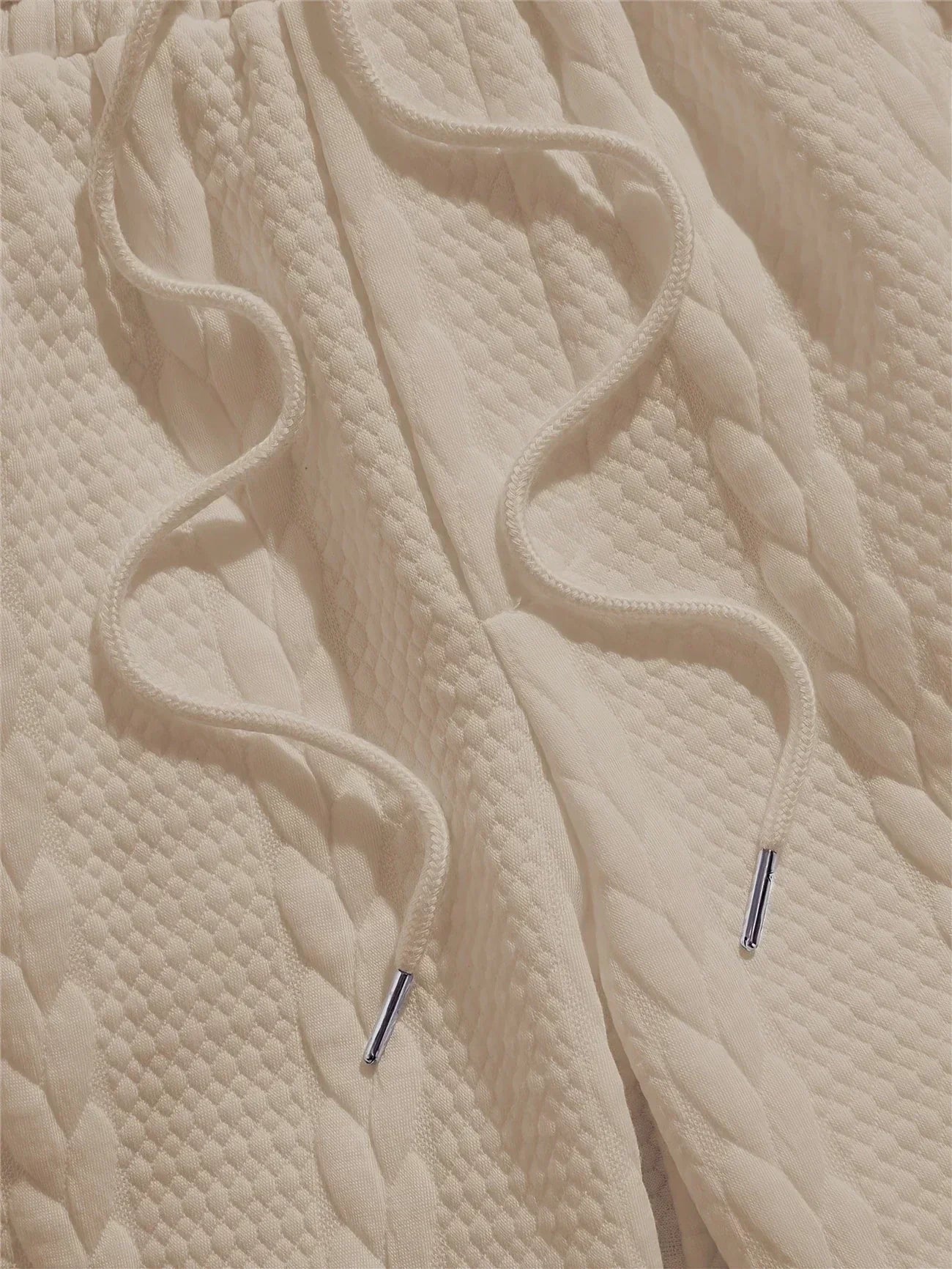 Stilfuldt Teksturdesign: Med et unikt kabelstrik mønster bringer dette sæt et moderne twist til klassisk afslapningstøj. Den detaljerede tekstur tilføjer dybde og visuel interesse, hvilket gør det til mere end bare et andet basis sæt. Dets rene linjer og minimalistiske vibe sikrer, at du ser afslappet velklædt ud.