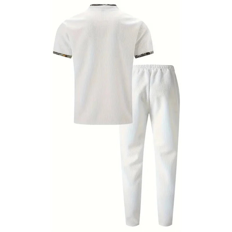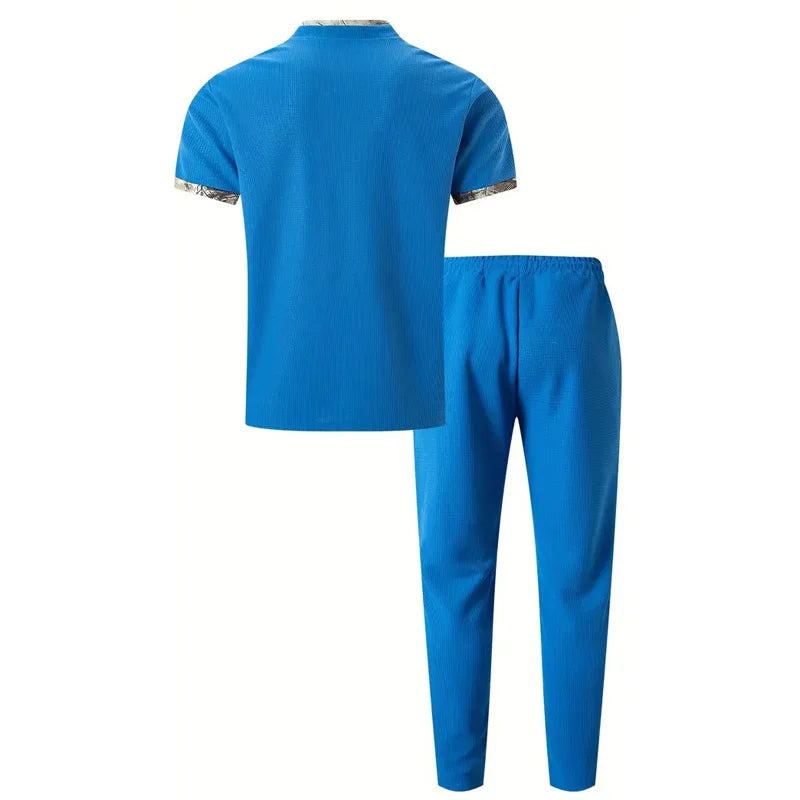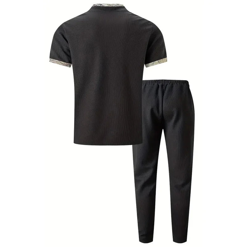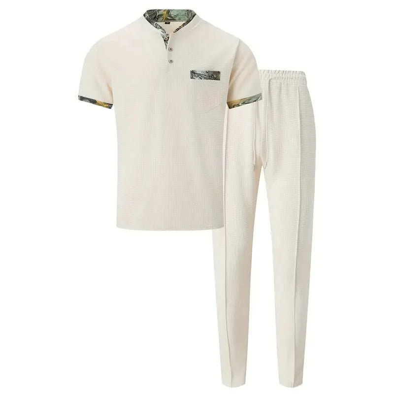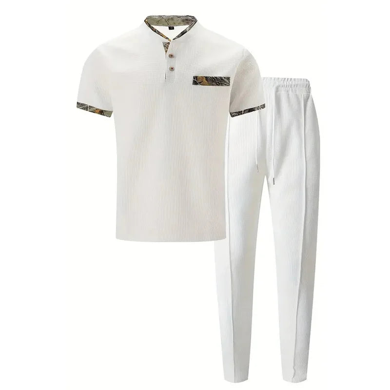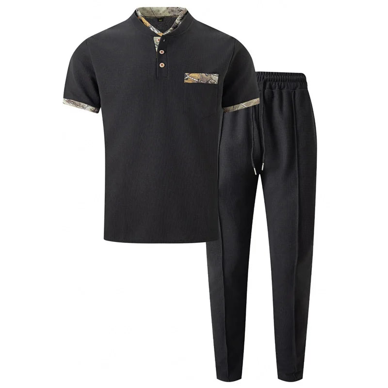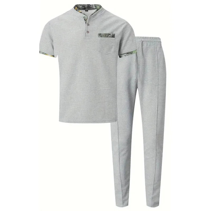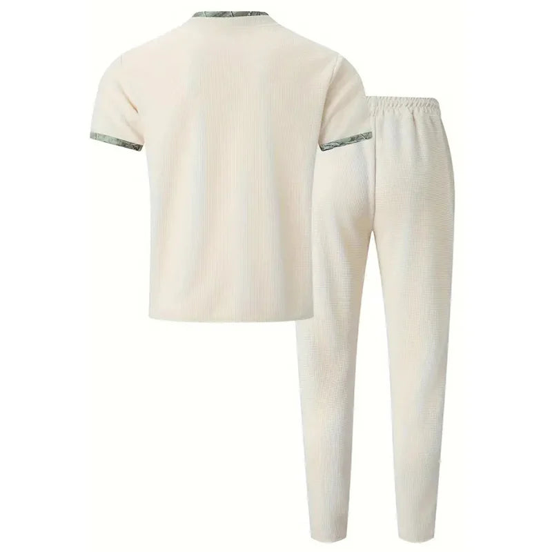 • Todelt sæt: kortærmet henley-t-shirt og bukser med snøre