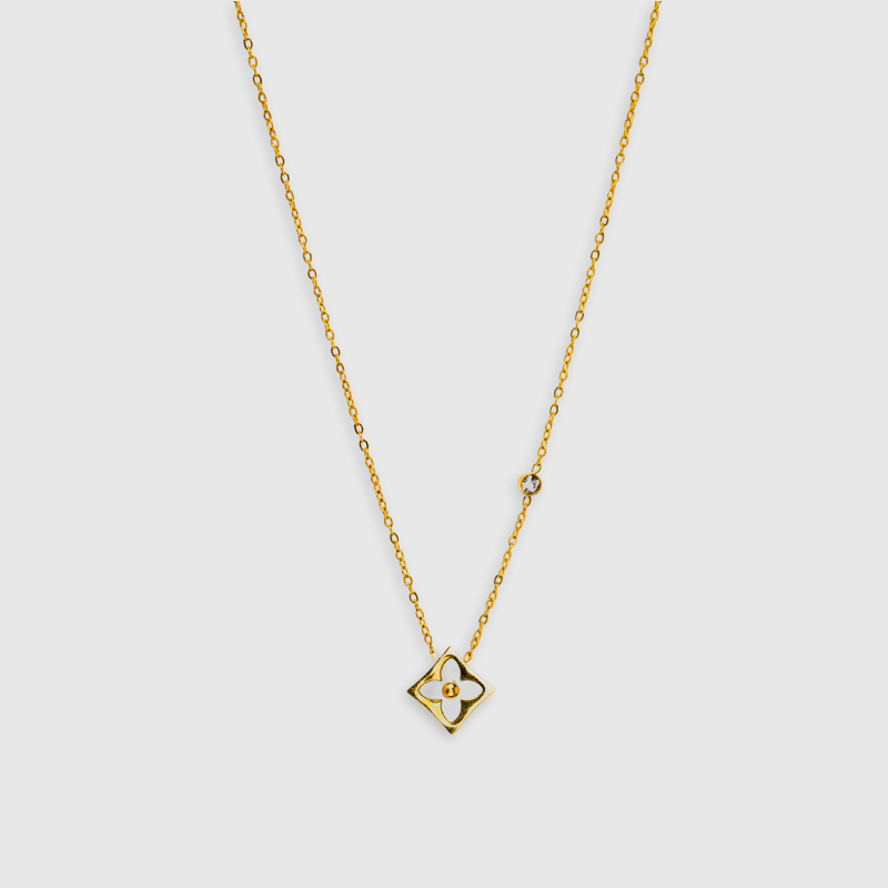 Dette fine halskæde har et lille kløvervedhæng, der symboliserer held og lykke, hvilket gør det til et meningsfuldt supplement i din smykkesamling.