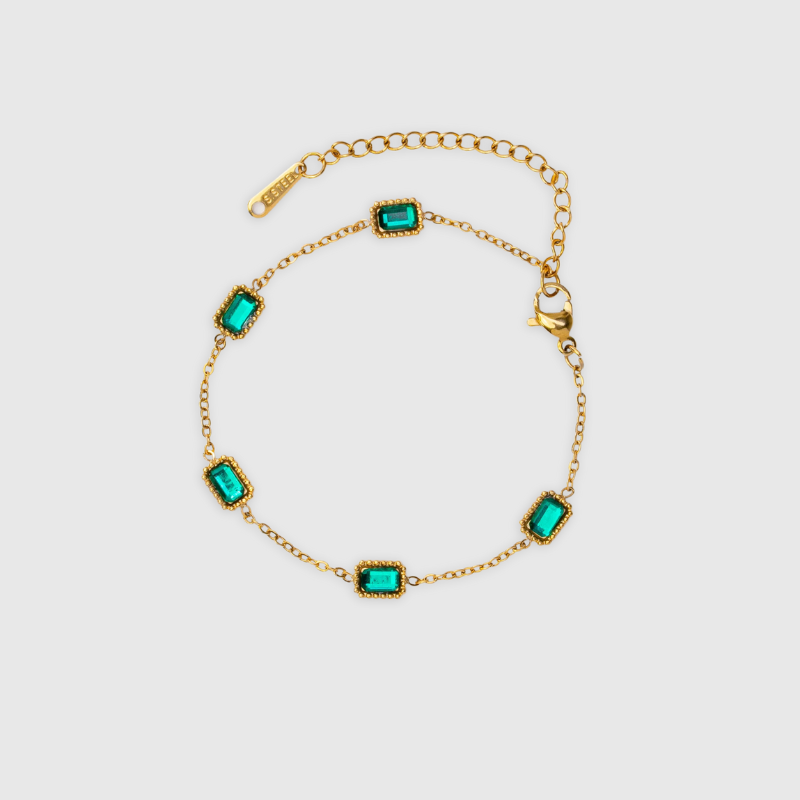 Emerald Trinity er et vidunderligt armbånd med glitrende smaragdsten, der giver et farveklip og elegance til alle outfits. Enkelt, elegant og perfekt til at klæde sig op med eller bære hver dag!