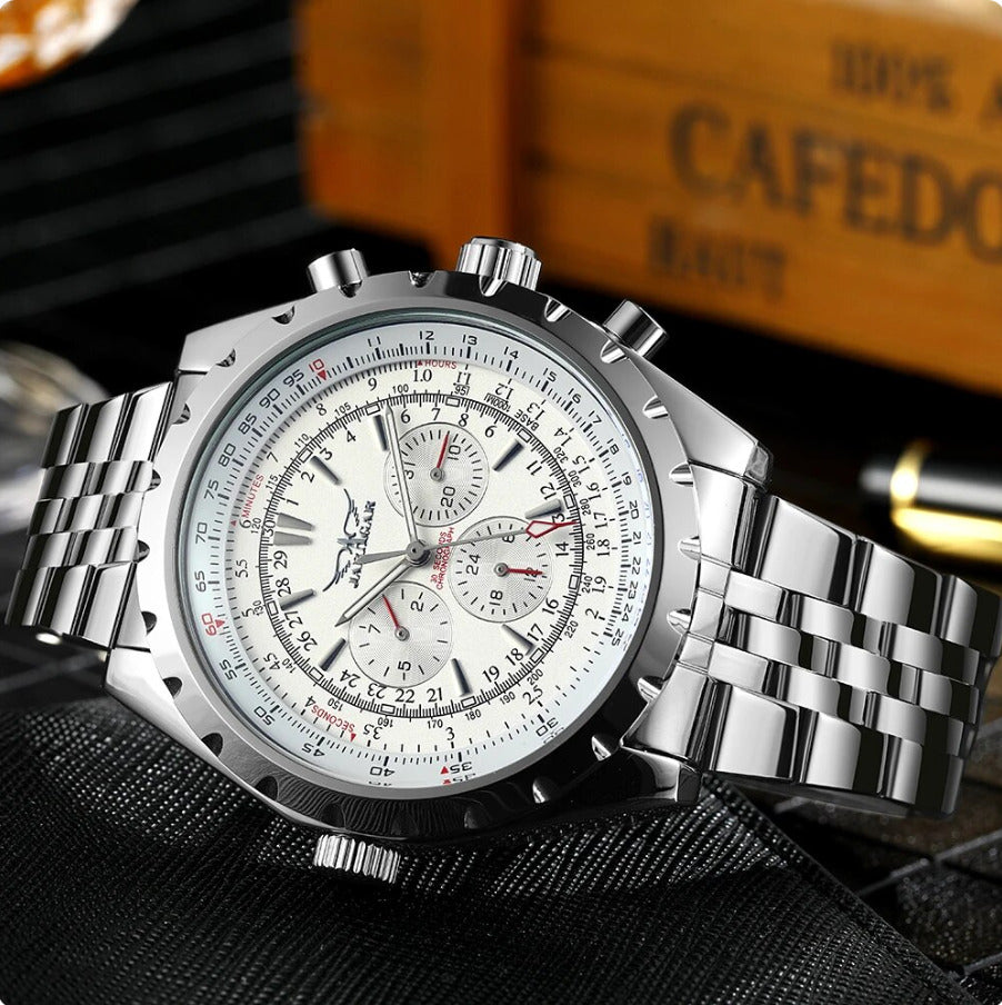 Designet, inspireret af militær beslutsomhed og fransk adel, forener robust æstetik med flydende elegance. Uanset om du taler med investorer eller nyder whiskey efter solnedgang – dette ur taler, før du gør.