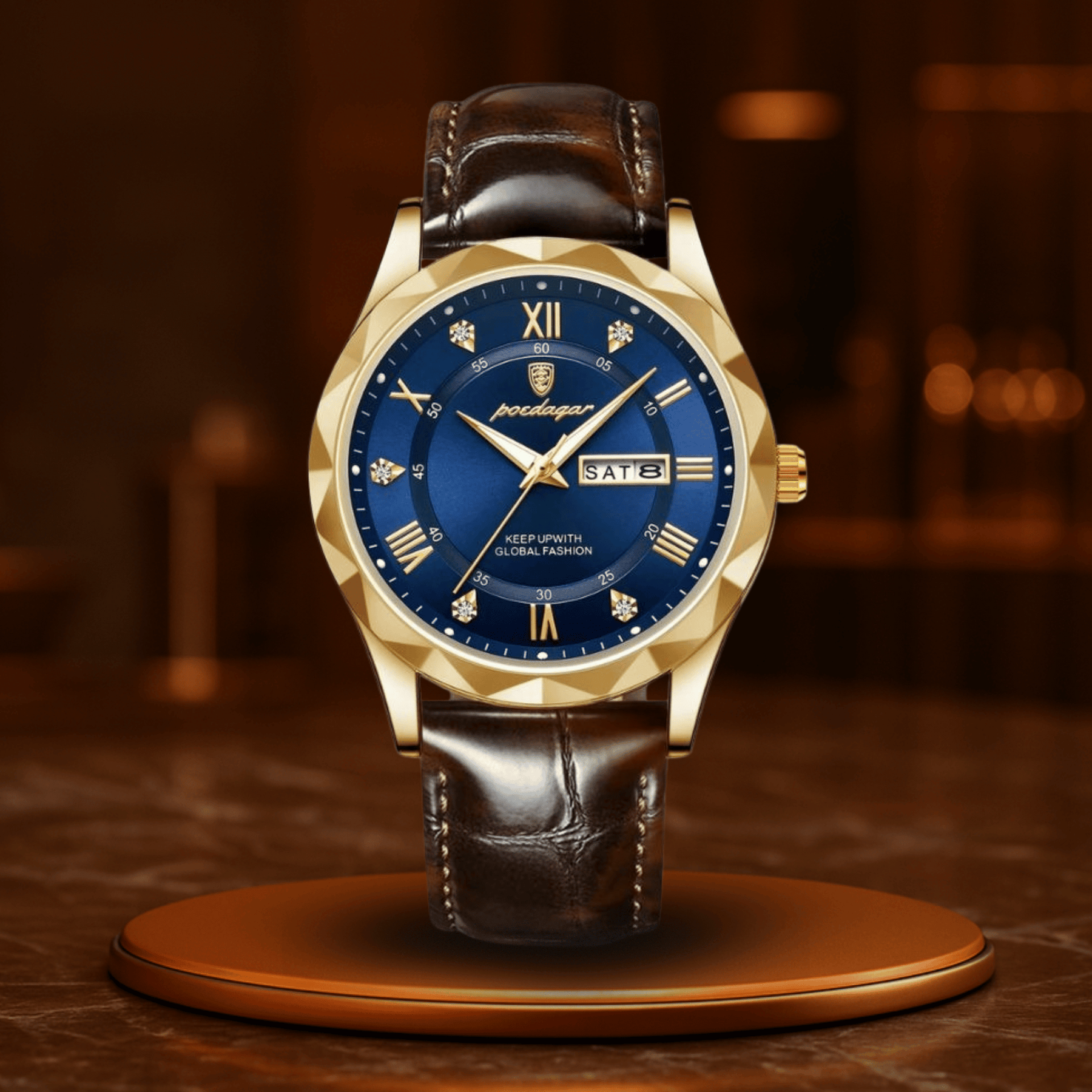 Dine lysende visere sikrer også overblik i svagt lys, mens dato- og ugeskærm fører dig gennem dine dage – uanset om de starter i mødelokalet eller i bjergene.