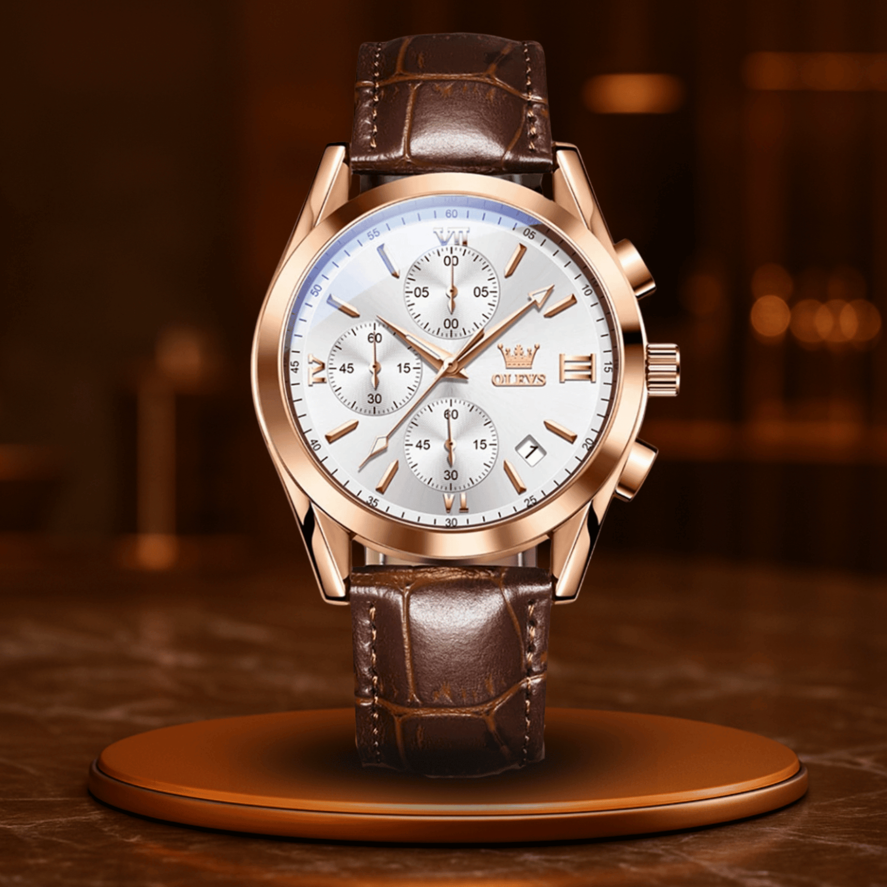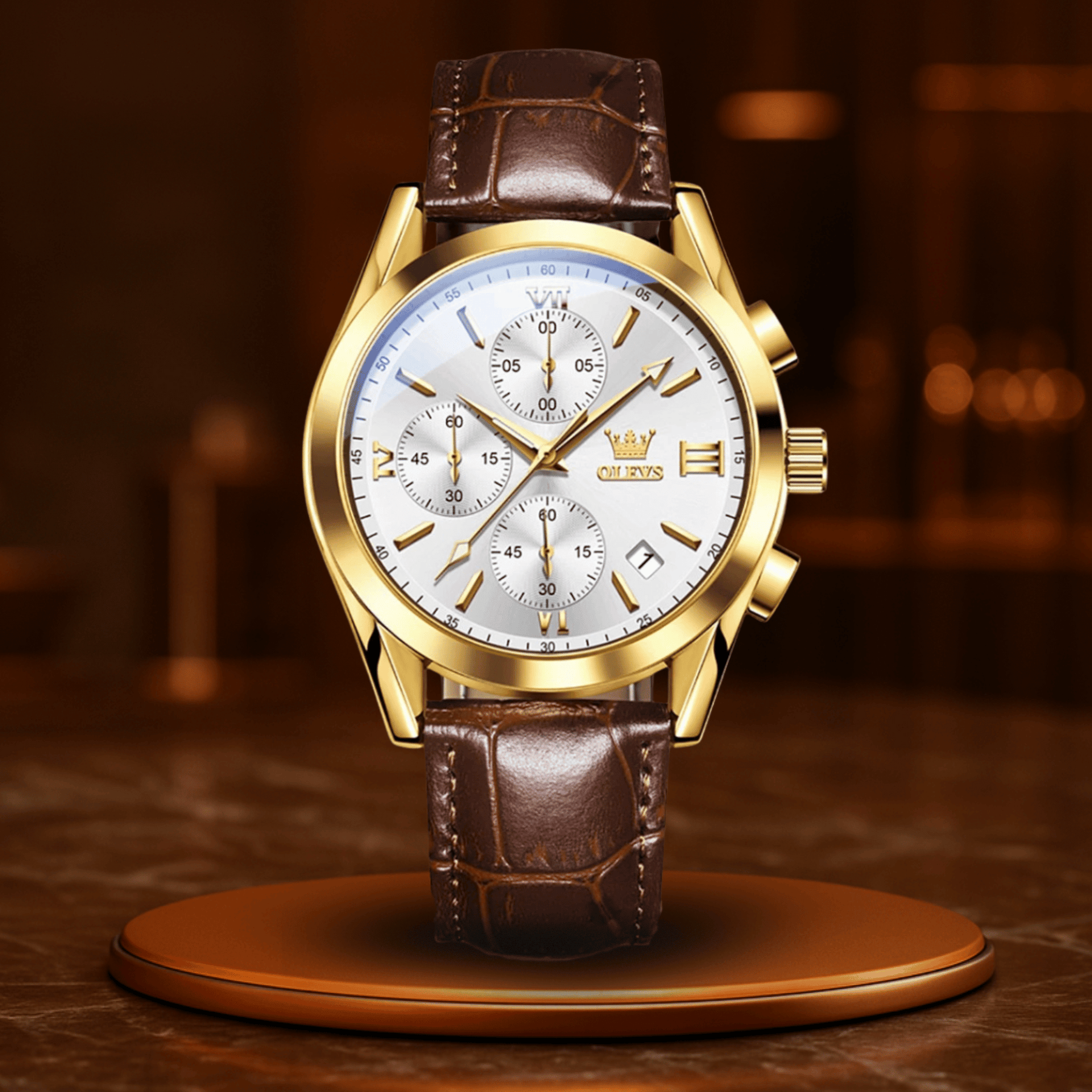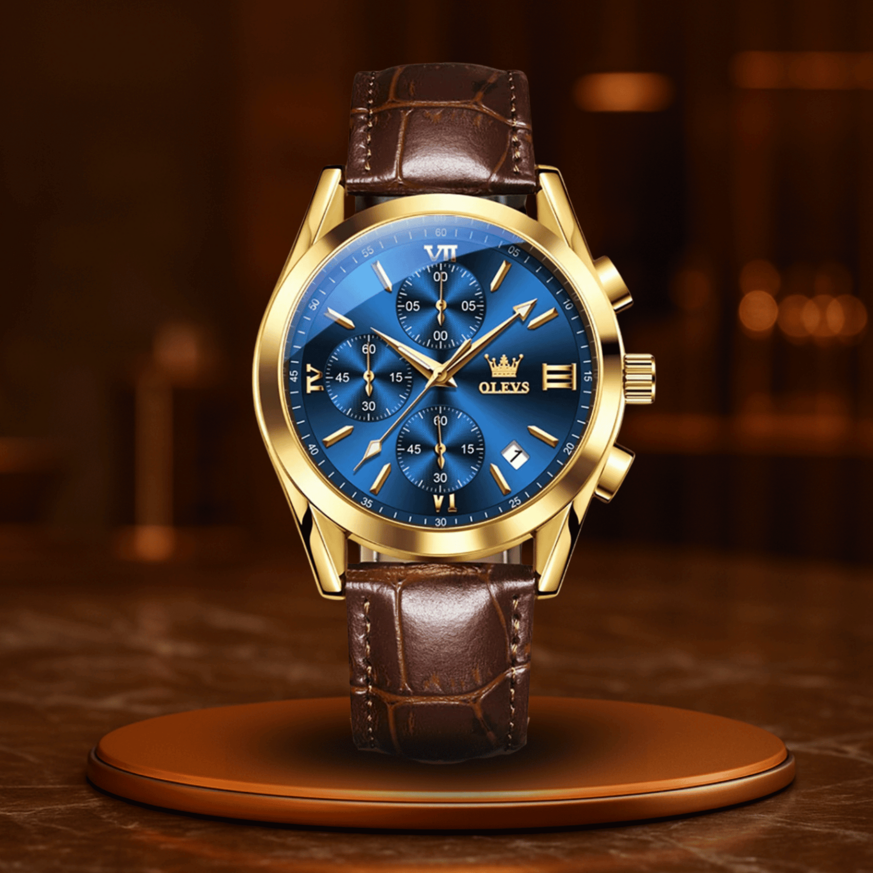 Lumora – Édition Souveraine fra Maison Céleste er ikke bare et ur. Det er en erklæring. En kombination af business-elegance og sporty tilstedeværelse, skabt til mænd, der optræder suverænt dag og nat. Det højkvalitets læderarmbånd, det polerede hus og de lysende chronograph-visninger gør det til den ideelle følgesvend – uanset om det er i bestyrelseslokalet, på rejser eller på eventyr i det fri.