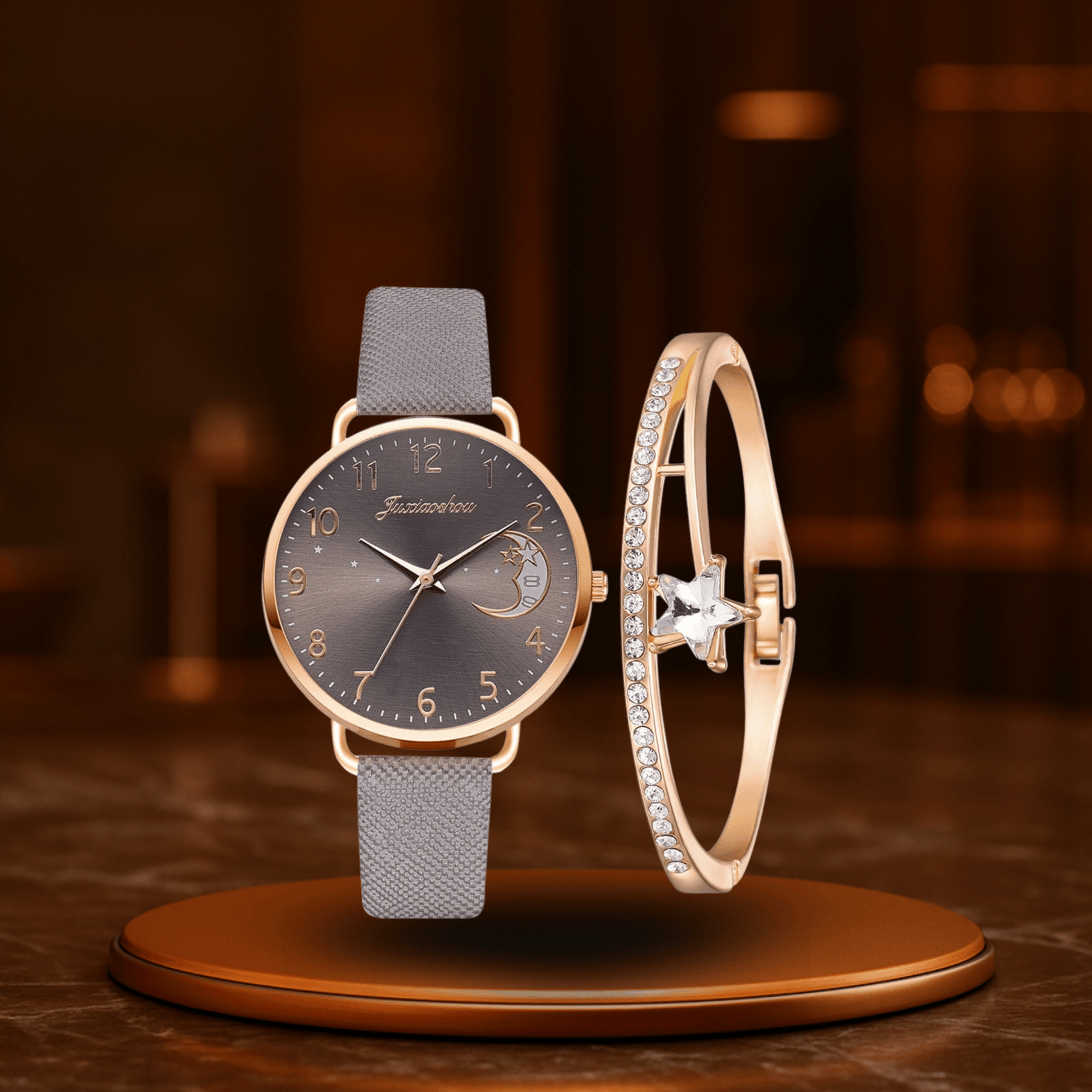 Med et let, men robust design sikrer dette ur komfortabel bæring, mens den præcise kvartsmekanisme garanterer, at du aldrig mister tidsfornemmelsen. Uanset om det er til dig selv eller som en særlig gave – er Lunaris Sæt den perfekte kombination af klassisk skønhed og samtidig funktionalitet.