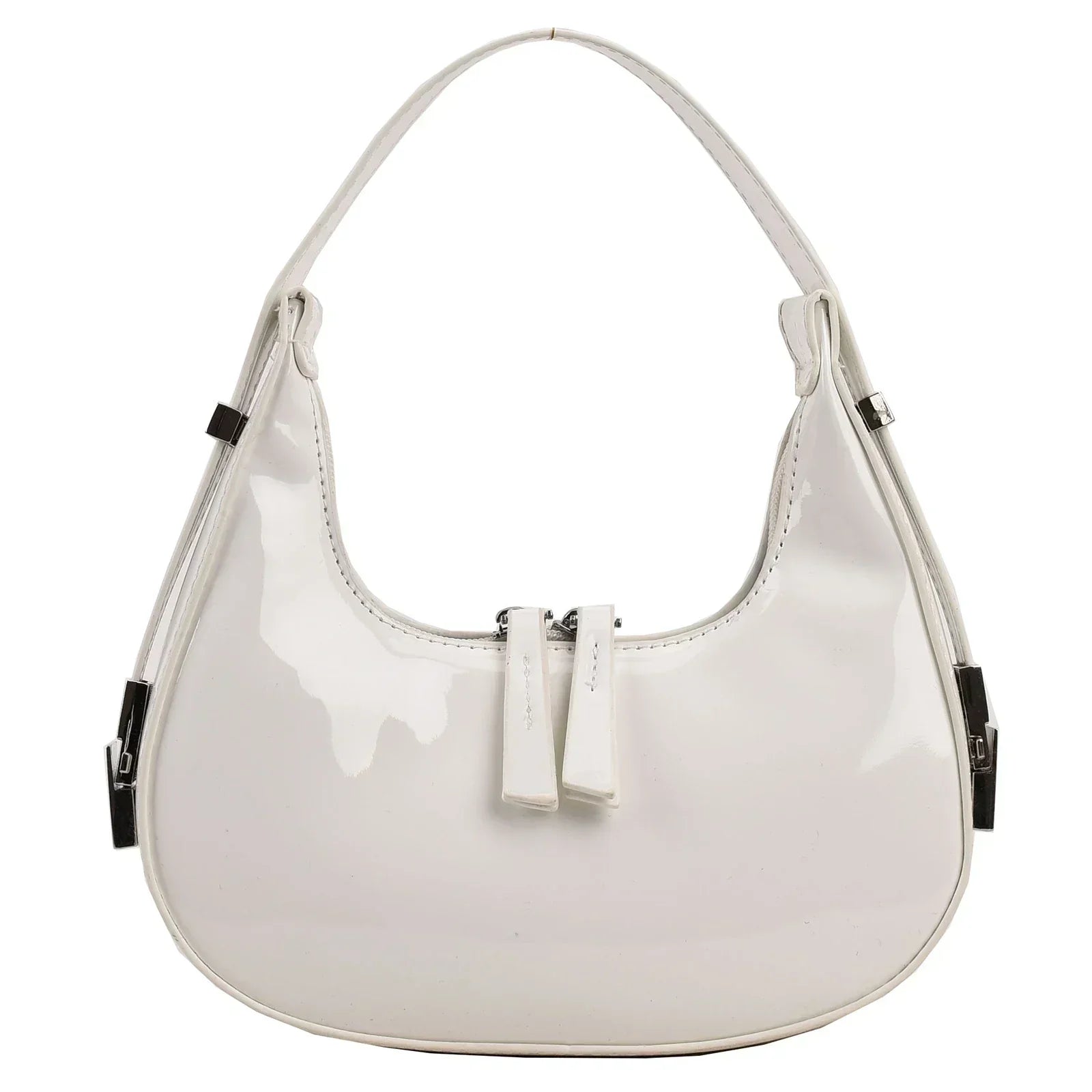 bella™ er en stilfuld skuldertaske i halvmåneform, perfekt til dig der elsker et feminint og vintage-inspireret udtryk. Den blanke lakfinish og unikke form gør den til et øjeblikkeligt blikfang – ideel til både hverdagsbrug og særlige lejligheder.