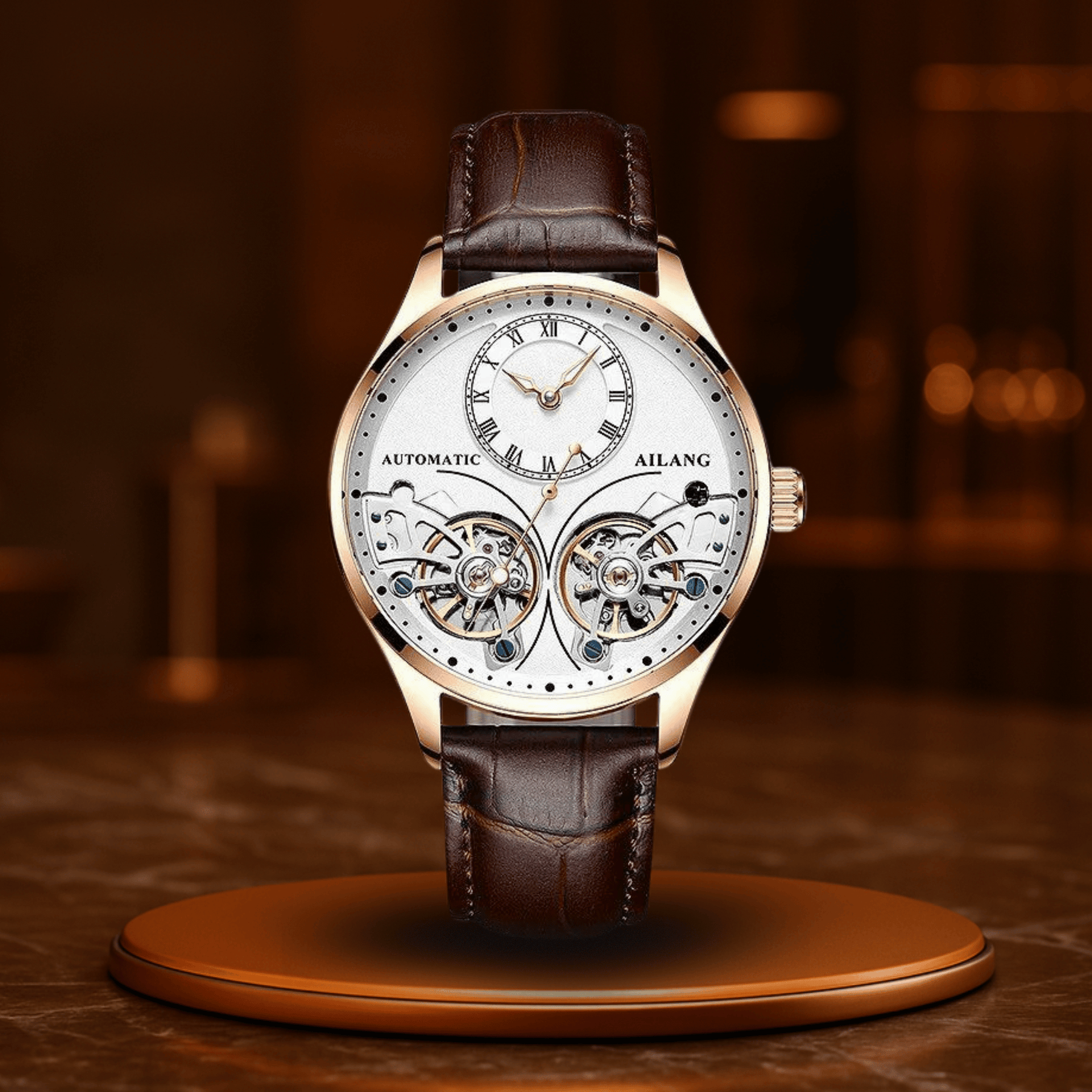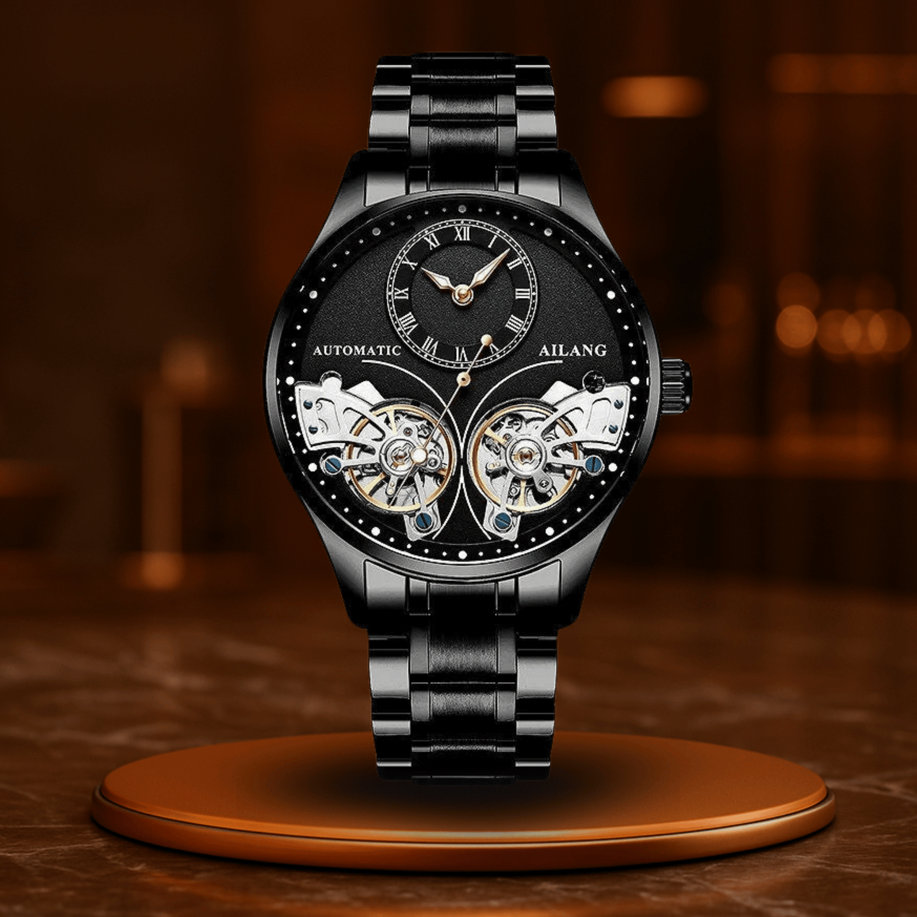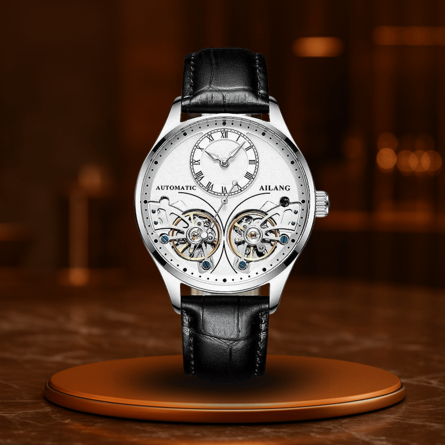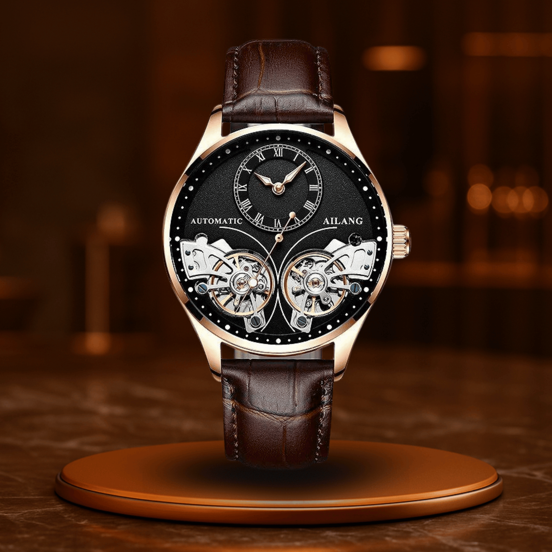 Et dobbelt lagret mekanisk hjerteslag, synligt og hypnotisk, båret af et automatisk urværk, der stoler på din energi. Ingen optræk. Ingen batteri. Kun dig - og tiden, som ikke kunne gå smukkere.