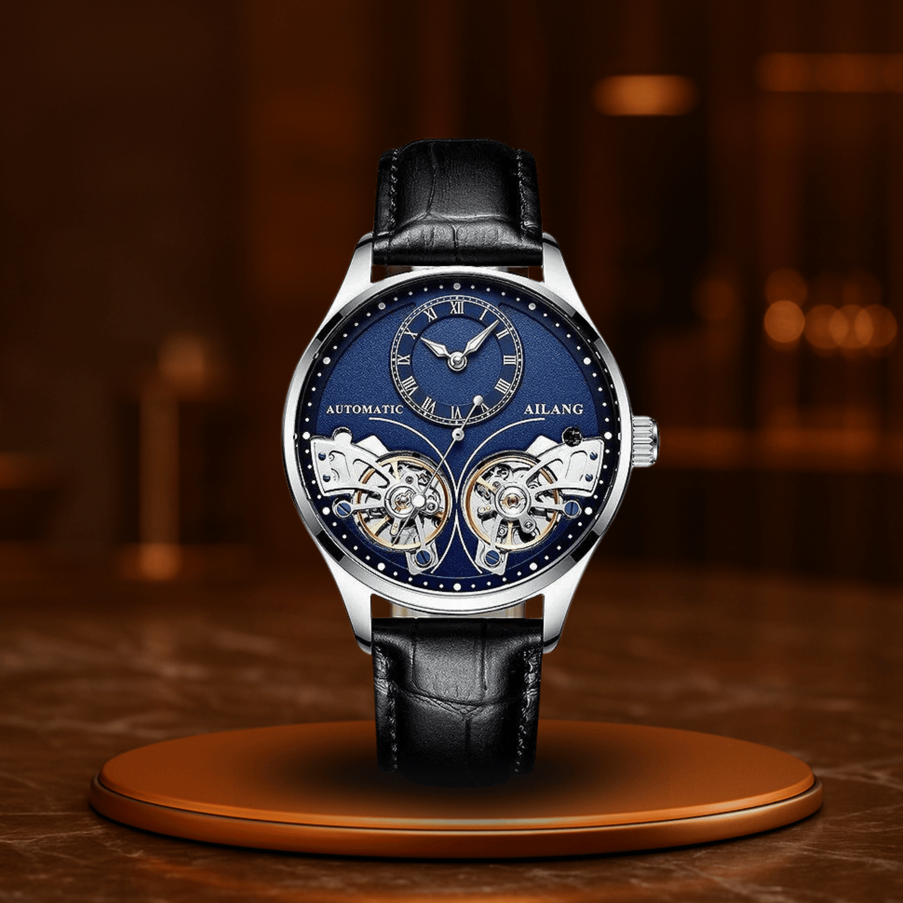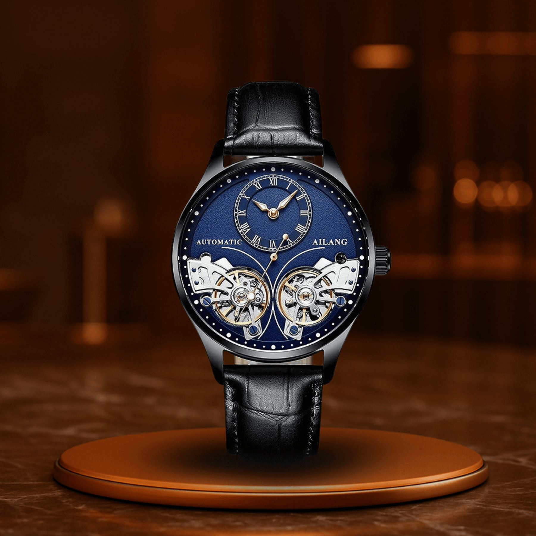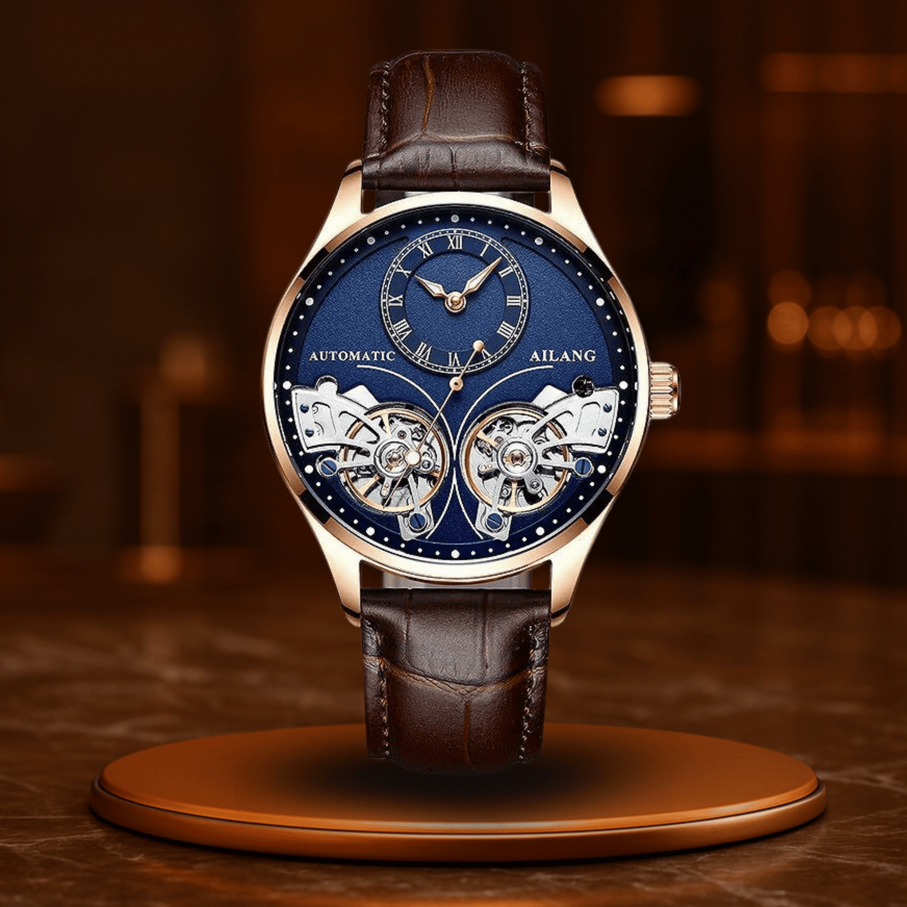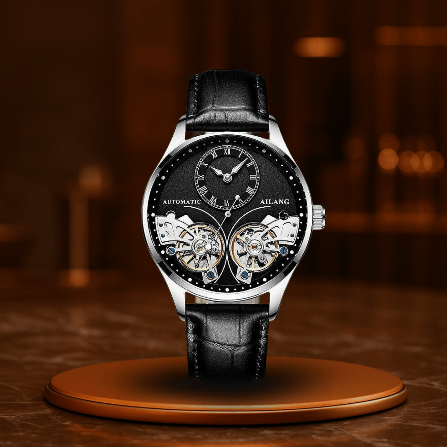 Et dobbelt lagret mekanisk hjerteslag, synligt og hypnotisk, båret af et automatisk urværk, der stoler på din energi. Ingen optræk. Ingen batteri. Kun dig - og tiden, som ikke kunne gå smukkere.